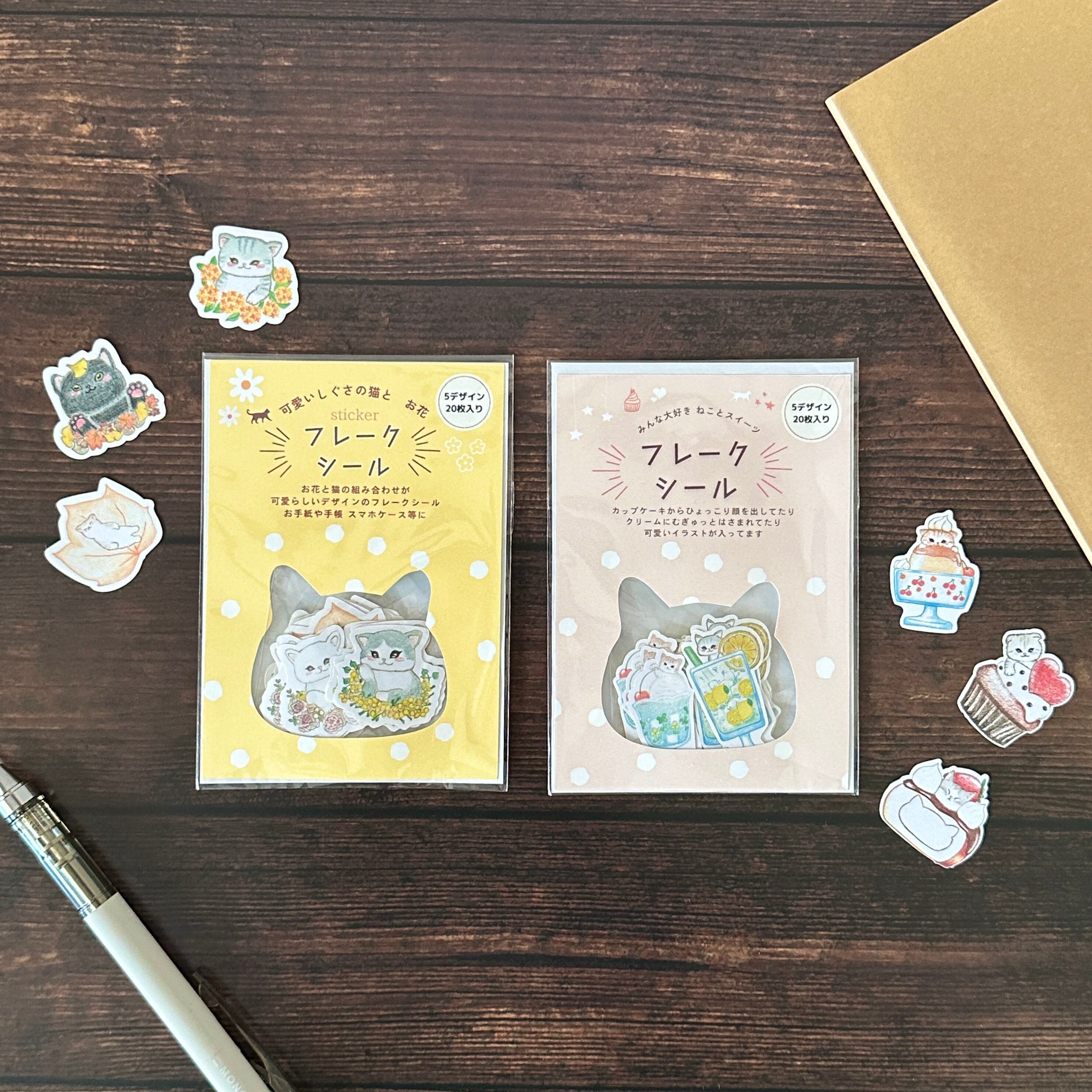 2種類のモチーフのフレークシールは、どちらもそれぞれの魅力が詰まっています。猫とスイーツは、甘くて幸せなひとときを演出し、猫とお花は優雅さを感じさせます。お手紙やノートのデコレーション、贈り物のラッピングなど、多彩なシーンで活躍すること間違いなしです。