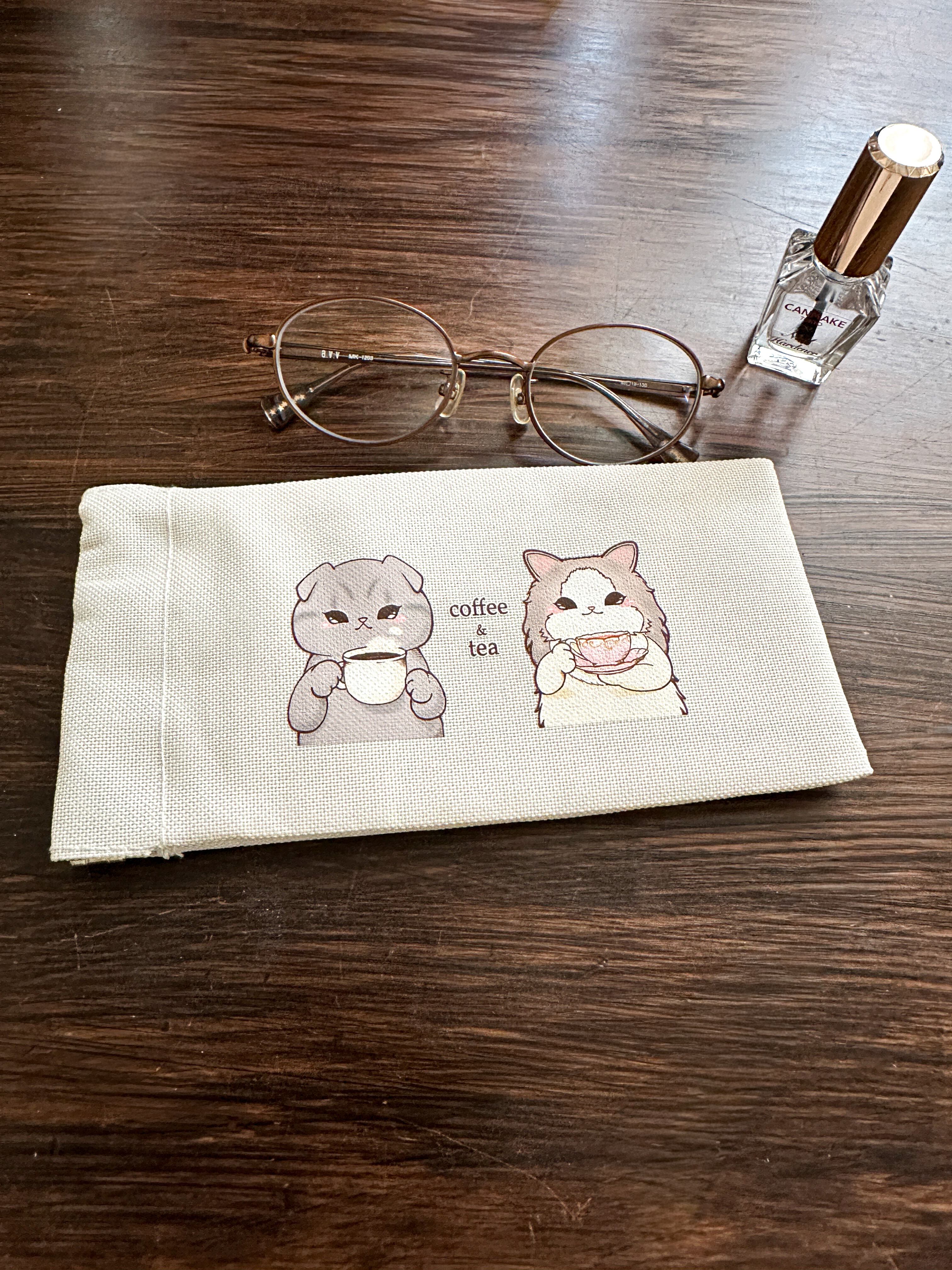 【細長バネポーチ|コーヒーと紅茶を楽しむ猫たち】